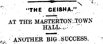 "THE GEISHA." AT THE MASTERTON;.TOWN . '"'" 'ANOTHER BIGkSUCCESS. -]