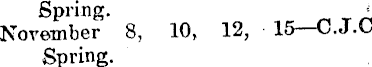 Spring. November 8, 10, 12, 15—C.J.C Spring.