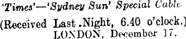 'Times' —'Sydney Sun' Special Cubic(Received Last .Night, 6.40 o'clock.) LONDON, December 17.
