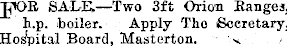 JpOR SALE. —Two 3ft Orion Ranges, h.p. boiler. Apply The Secretary, Hospital Board, Masterton.