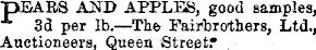 pEARS AND APPLES, good samples, 3d per lb.—The Fairbrothers, Ltd., Auctioneers, Queen Street?