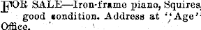 JJIOB SALE —Iron-frame piano, Squires, good condition. Address at ‘‘Age” Office.
