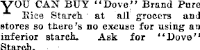 VOU CAN BUY “Dove” Brand Pure Rice Starch at all grocers and stores so there’s no excuse for using aw inferior starch. Ask for “Dove” Starch.