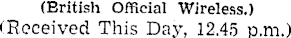 (British Official Wireless.) (Received This Day, 12.45 p.m.)