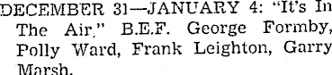 DECEMBER 31— JANUARY 4: “It’s In The Air.” B.E.F. George Formby, Polly Ward, Frank Leighton, Garry Marsh.