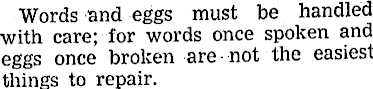 Words and eggs must be handled with care; for words once spoken and eggs once broken are not the easiest things to repair. ______
