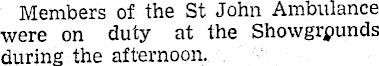 Members of the St John Ambulance were on duty at the Showgrpunds during the afternoon.