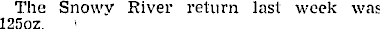 The Snowy River return last week was 1250 z.