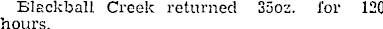 Blackball Creek returned 350 z. for 120 hours.