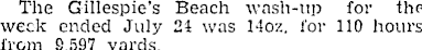 The Gillespie's Beach wash-up for the week ended July 24 was 14oz. for 110 hours from 9.597 yards.