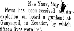 New York, May & News has been received oWftn < explosion on board a gnnboat at Guayaquil, in Ecuador, by which fifteen lives were lost.