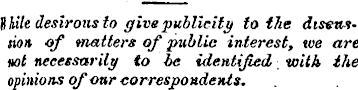 liUkdesirons to give publicity to the diseaslion of matters of public interest, ive are not necessarily to be identified with the opinions q/our correspondents.