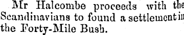 Mr Halcombe proceeds with the Scandinavians to found a settlement in the Forty-Mile Busb.