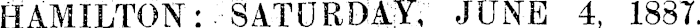 HAMILTON:--SATURDAYS JUNE 4, 1887.