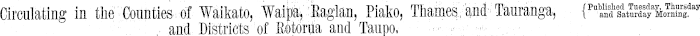 Circulating in the Kako, TbaMaM Tauranga, { Pu S^S^&S day , and Districts of Eotoriia and Taupo, : r