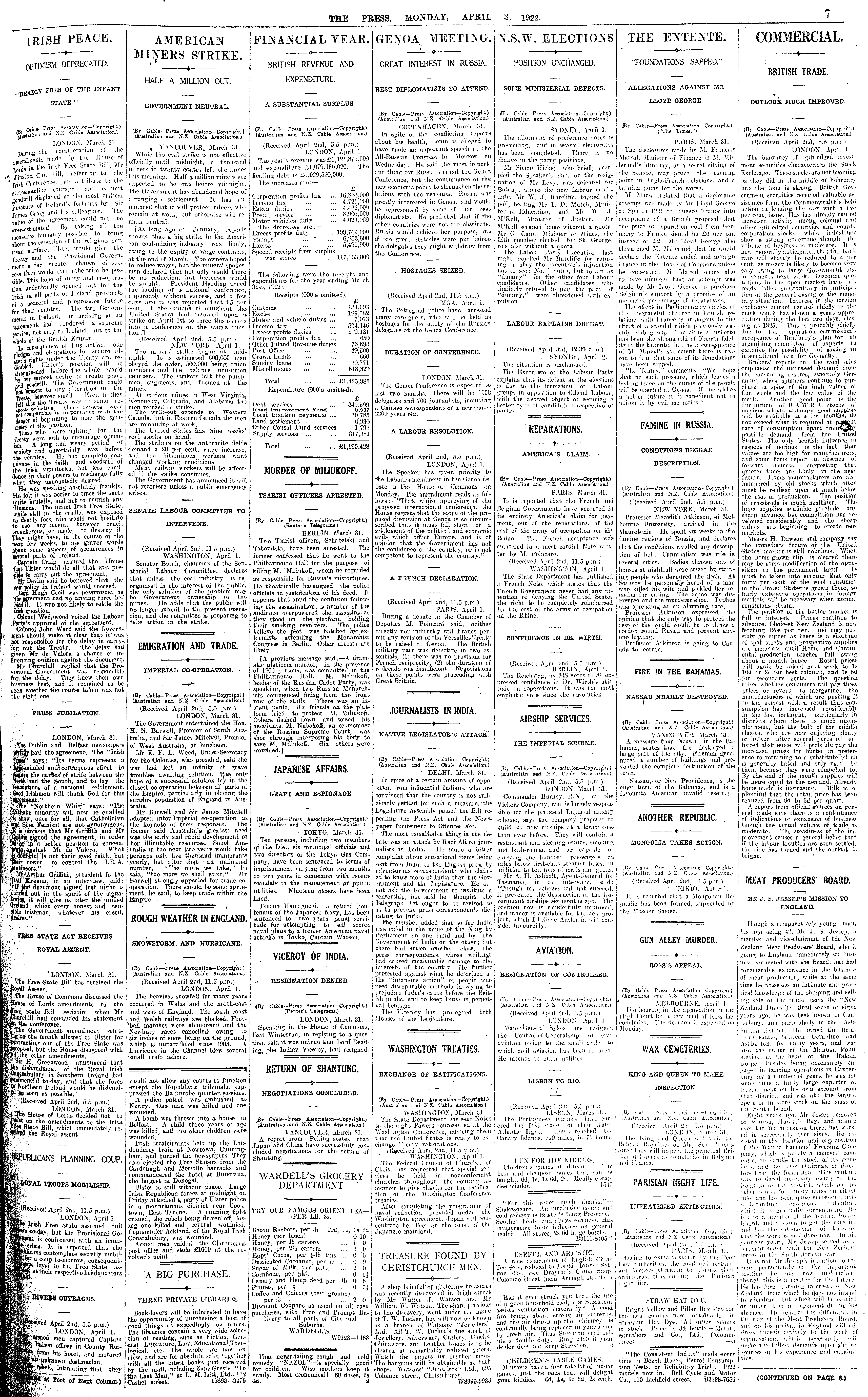 - 3 April 1922