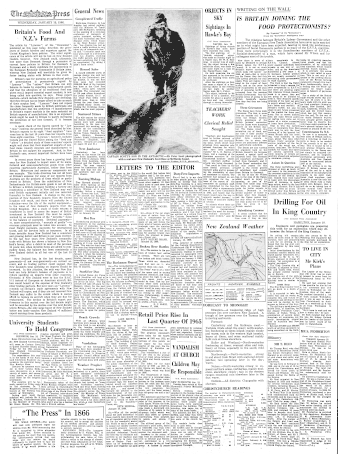 - ILLUSTRATIONMR PETER SCOTT (SON OF THE ANTARCTIC EXPLORER) with members of the New Zealand Antarctic party at Scott Base. Mr Scot...