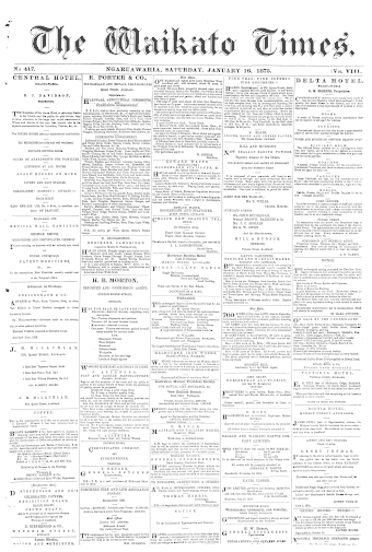 - ARTICLEThe Waikato Times. "OMNE SOLUM FORTI PATRIA." SATURDAY, JANUARY 16, 1875.