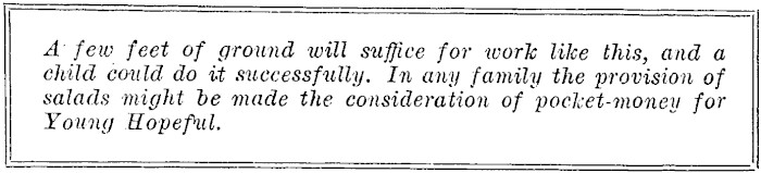 A few feet of ground will suffice for work like this, and a child could do it successfully. In any family the provision of salads might he made the consideration of pocket-money for Young Hopeful.