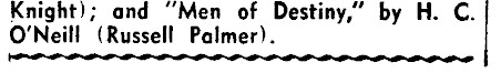 Knight); and "Men of Destiny," by H. C. O'Neill (Russell Palmer).