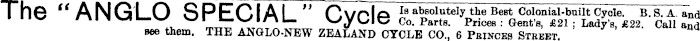 The "ANGLO SPECIAL" Cycle we them. THE ANGLO-NEW ZEALAND CYCLE CO., 6 Pbinces Street.