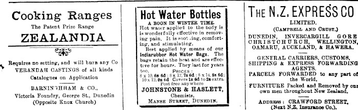 Cooking Ranges Hot Water Bottles The N.Z. EXPRESS CO t. « n • -n A BOON IN WINTER TIME. LIMITED. The Patent Prize Kange Hot wat,er applied to the body ie (CAMPBBLL AND Obubt.) l t\^^fZi^Si dunedin, inveroargill gore AJUJXIJJXI* UlJ*. £J OHRIBTOHUBOH, WELLINGTON, g^ = Be,? applTedb^ Sew. of our OAMARU, AUCKLAND, * HAWERA. iSTSSTn fhe K'and'S; elel GENERAL CAREERS, CUSTOMS, Requires no setting snd will bum any Co »*£ *™ "^ They hit for Jears SHIPPING & EXPRESS FORWARDING VERANDAH CASTINGS of all kinds t p FORWARDED to any part of Catalogne» on Application loKeleA CoTeraffftltotoStri the World. RAT , NTV^^T^ ro T rx-r T *r«m^T« a^'S a'ot txpw FURNITURE Packed and Remored by our BARNINIHHAM & CO., JOHNSTONE & HASLETT, own men throughott t New Zealand. Victoria Foundry, George St., Dunedin Chemists, (Opposite Knox Church) Maksb Stbkkt, Dmnspiy. Addbebs i CRAWFORD STREET. n^ ■■■^ m mmi m . (Next N.Z. Insuranoe Co.).