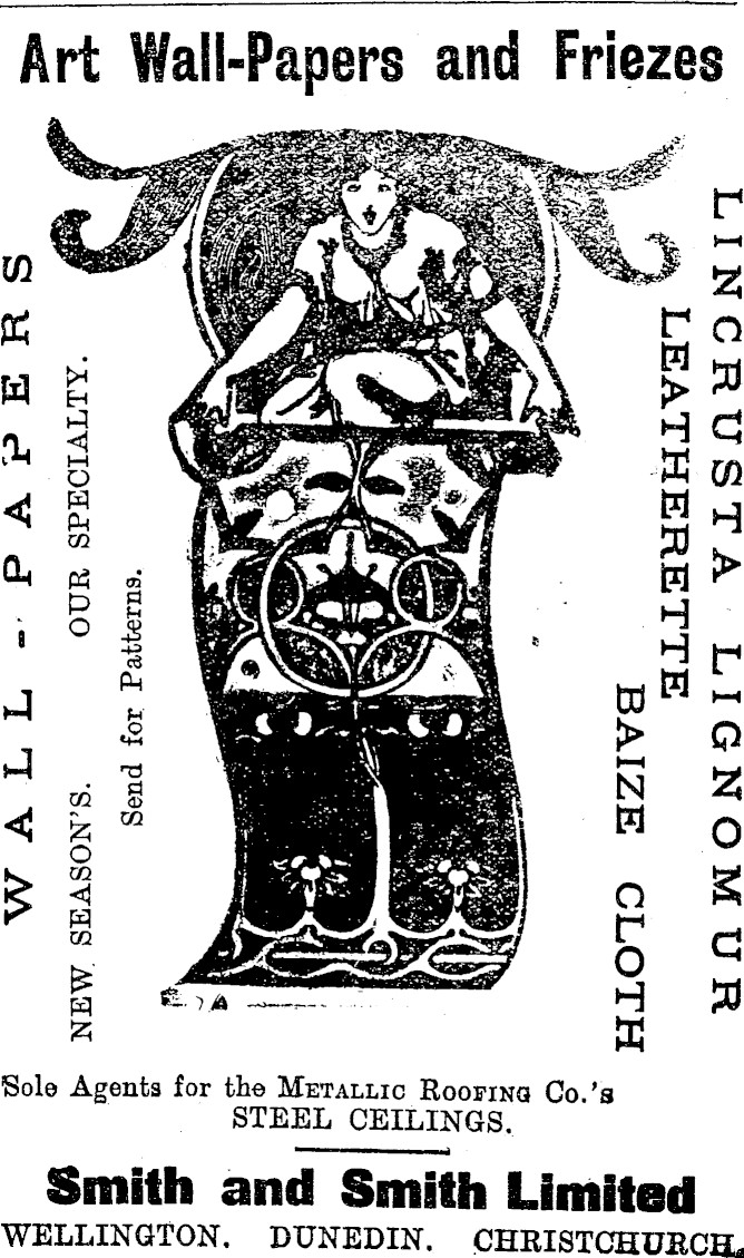 Art Wall-Papers and Friezes r a r o w > JD a H EC m m m H M ► w H H r to n td > Q 55 N CQ 5> PI CQ O o r G O » H &• 7 A S Sole Agents for the Metallic Roofing Co.'s STEEL CEILINGS. Smith and Smith Limited WELLINGTON. DUNEDIN. CHRISTCHURCH*