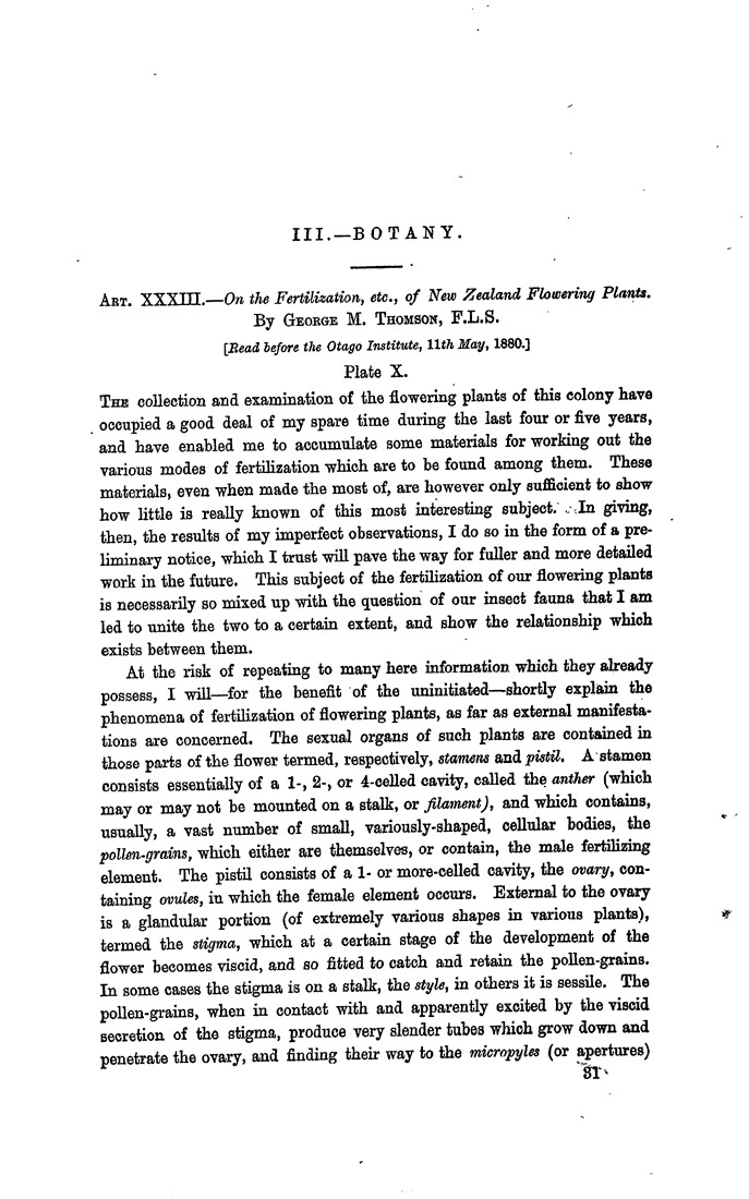 21,517Art. XXXIII.—On the Fertilization, etc., of New Zealand Flowering Plants. Transactions and Proceedings of the Royal Society of New Zealand, Volume 13, 1880, Unnumbered Page