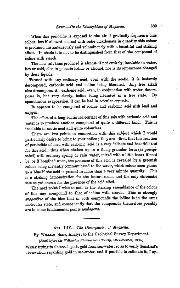 495Art. LIII—On a Periodide and an Iodo-Carbonate of Lead. Transactions and Proceedings of the Royal Society of New Zealand, Volume 13, 1880, Page 388