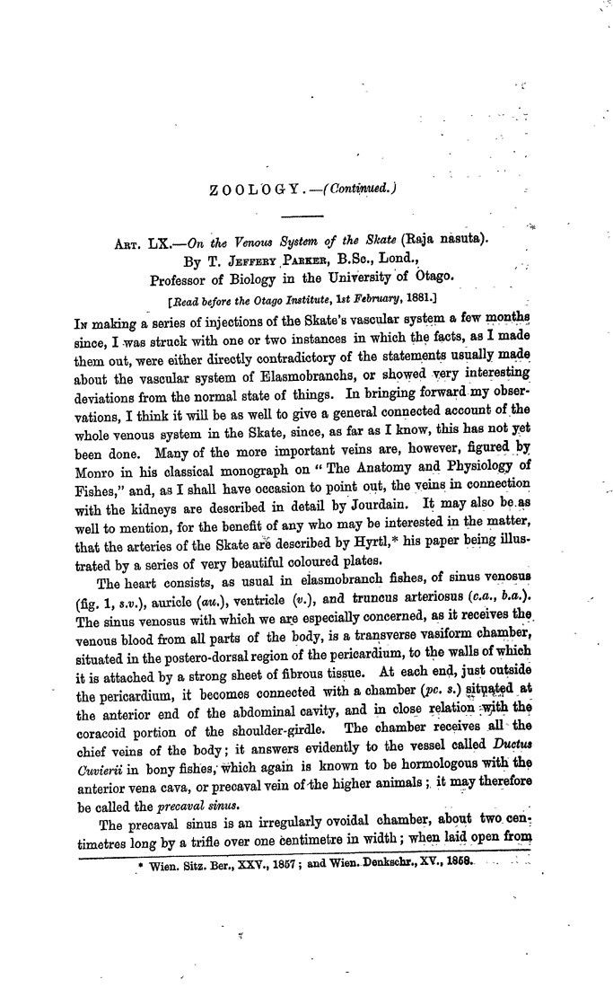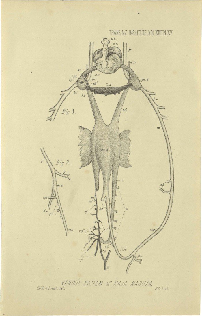 2,384Art. LX.—On the Venous System of the Skate (Raja nasuta). Transactions and Proceedings of the Royal Society of New Zealand, Volume 13, 1880, Unnumbered Page
