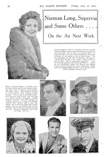 - ILLUSTRATIONBelow is Victoria Hopper, an English screen star who will be heard in some soprano numbers from 2YA on Friday evening...